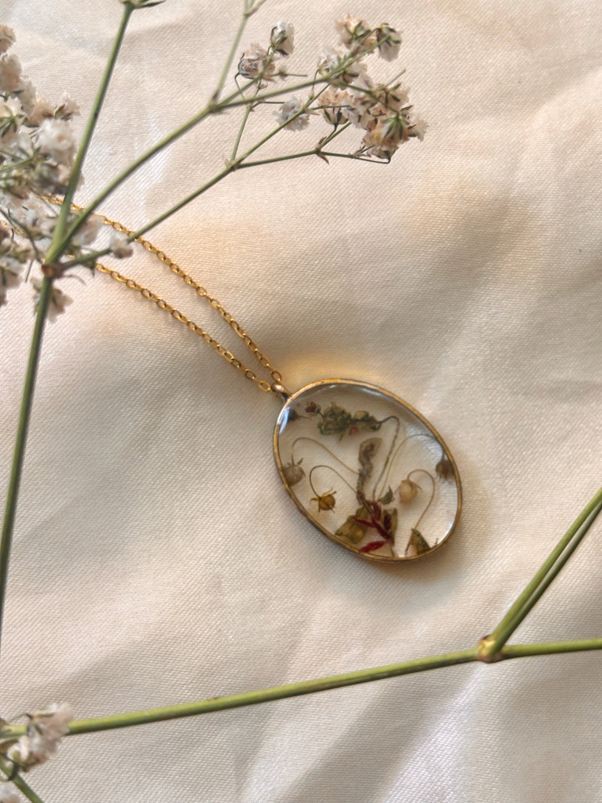 Stemmed flower, leaf & bud preserved in resin